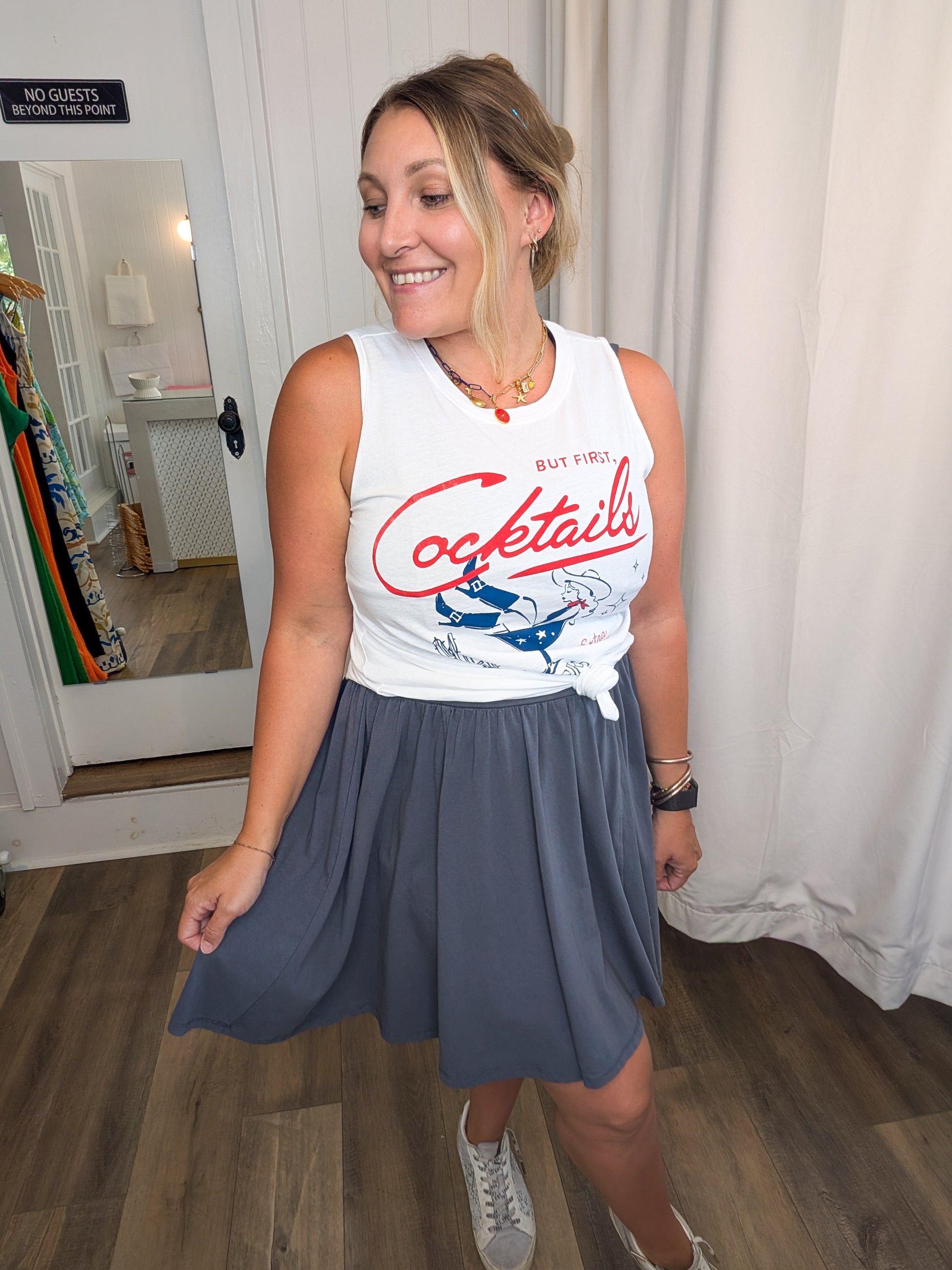 *FINAL SALE*“But First Cocktails” Mineral Graphic Tank Top