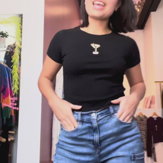 Add a touch of fun and flair to your casual lineup with the Gemma Martini Bead Tee! This playful tee is adorned with sparkling martini bead embroidery, serving up a quirky statement twist for any outfit. Crafted from a soft and stretchy blend, it's designed for all-day comfort and effortless style-perfect for everything from brunch dates to girls' nights out. Martini bead embroidery for a unique, eye-catching accent. Short sleeve design for easy, breezy wear. Soft, stretchy fabric blend for maximum comfort and a flattering fit