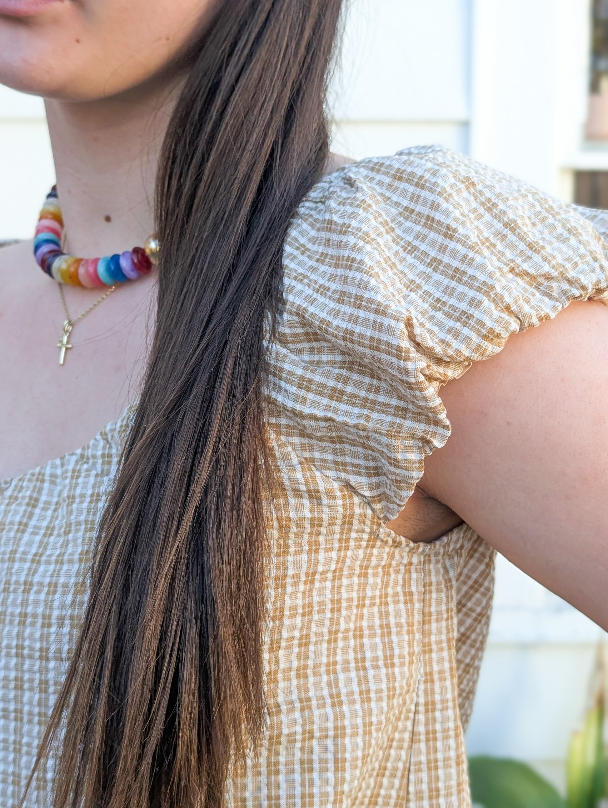Meet the Bubble Top: the shirt that’s here to elevate your spring wardrobe! With its playful puff sleeves, cropped cut, and scoop neckline it’s like a sunny day in clothing form—perfect for turning heads or charming a picnic (or both)!